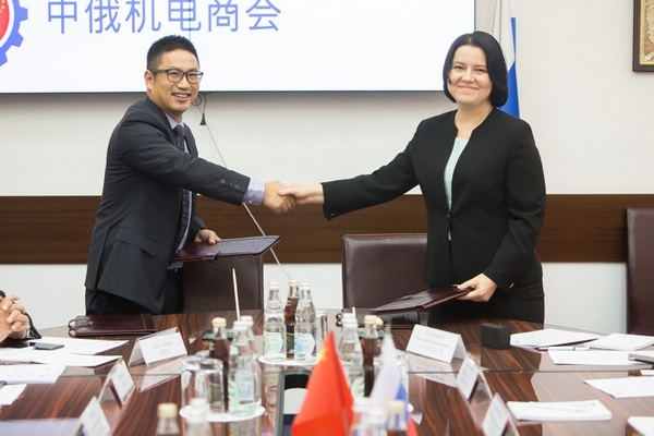 ↑ 世纪保险经纪董事总裁杨桦先生与中俄机电商会保险中心主任叶列娜·哈拉莫