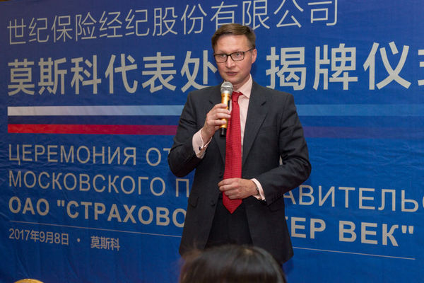 世纪公司董事钟金海先生在讲话中指出,莫斯科代表处是世纪公司在“一带一路”沿途设立的重要服务网络,希望能够与俄罗斯以及周边国家的保险业同行一同为促进中俄两国保险市场交流,共同为"一带一路”战略下中俄企业合作提供全面的风险管理与保险服务,推动中俄保险领域发展进入新的历史阶段贡献力量。